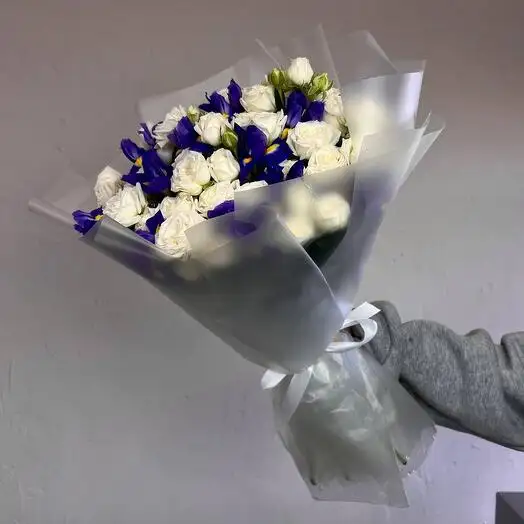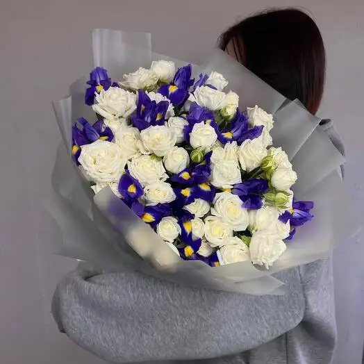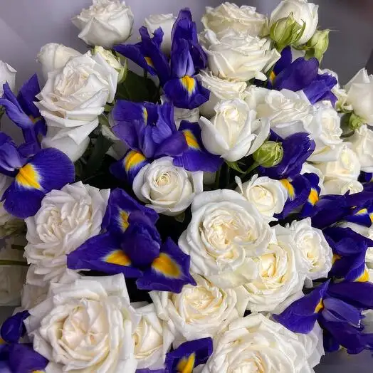 Этот букет сочетает в себе изящество белых кустовых роз и утонченность ирисов, создавая атмосферу чистоты и свежести. Нежные оттенки подчеркивают элегантность композиции и подходят для любого торжественного события. Композиция излучает легкость и природную красоту, вызывая восхищение и умиротворение. Такой букет станет прекрасным символом искренних чувств и светлых эмоций.