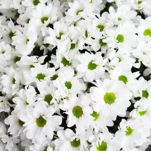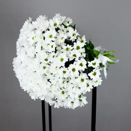 Пышный букет из белых ромашковидных кустовых хризантем. Нежность лепестков и свежий аромат создадут непотворимую атмосферу в вашем доме