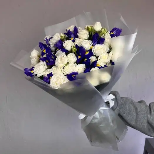 Этот букет сочетает в себе изящество белых кустовых роз и утонченность ирисов, создавая атмосферу чистоты и свежести. Нежные оттенки подчеркивают элегантность композиции и подходят для любого торжественного события. Композиция излучает легкость и природную красоту, вызывая восхищение и умиротворение. Такой букет станет прекрасным символом искренних чувств и светлых эмоций.